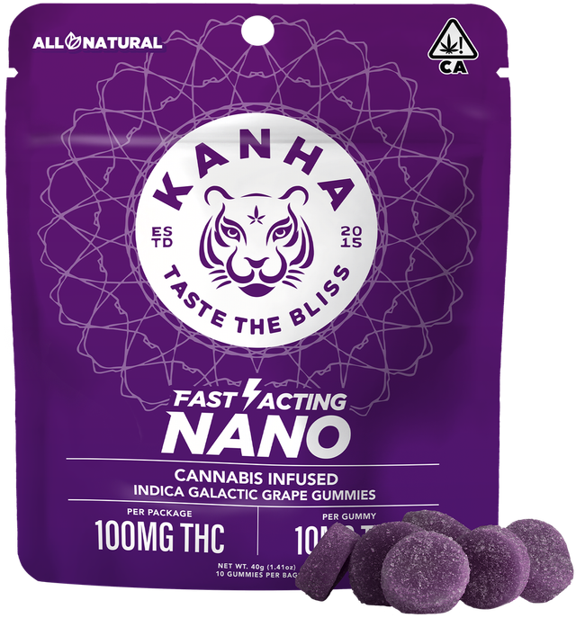 Who needs wine when Galactic Grape Indica gummies deliver the flavor of harvest-ready grapes with reserve-worthy indica oil and terpenes like myrcene, α-humulene and β-caryophyllene. Each soft and juicy gummy contains 10mg of THC and our exclusive NANO technology for faster takeoffs that send you into orbit in minutes. KANHA, the first to introduce fast-acting effects, remains the best with NANO gummies.